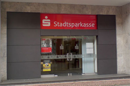 Fassadengestaltung und Erweiterung des bestehenden Eingangsbereiches zu einem 24-Stunden-Schalter.